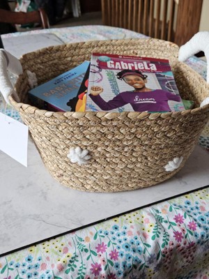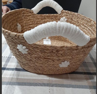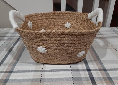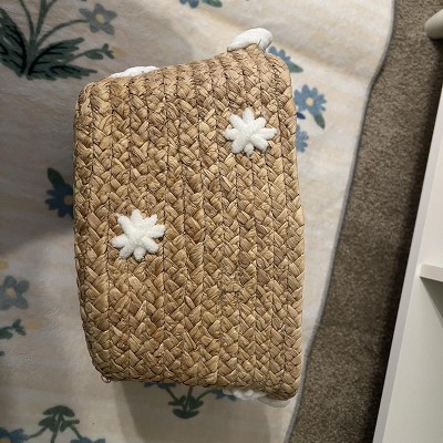 Braided Water Hyacinth with Tufted Embroidery Square Storage Basket - Cloud Island™