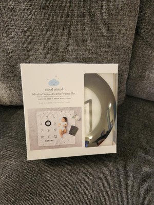 I can't wait to use this Cloud Island muslin blanket and frame set. Such a fun way to document our little ones milestones each month! Thin muslin, so not really a plush blanket, but perfect for capturing memories of your little one. Two blankets are included- one light and one dark. I especially love the gender neutral colors!