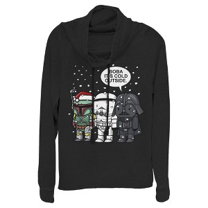 Juniors Womens Star Wars Christmas Boba It's Cold Outside Cowl Neck Sweatshirt - 1 of 4
