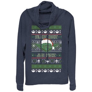 Juniors Womens Star Wars Ugly Christmas Yoda Night Cowl Neck Sweatshirt - 1 of 3