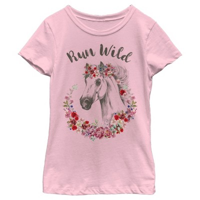Girl's Lost Gods Horse Ride Heels Down Eyes Up T-Shirt - Light Pink - Small