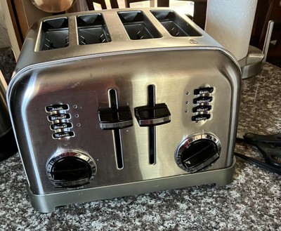 This toaster replaced the same model we had for over 5 years that was used daily. We liked it so much we decided to keep the same one when it broke. The old one was still working but when shaking the English Muffin chunks out of it it slipped out of my hands and to the floor it went separating the top metal from the plastic base exposing the wires. We like the fact that most of this toaster is metal and not plastic and looks great in out stainless steel kitchen with gray quartz countertops. We love this toaster and Cuisinart’s quality this second to none.
