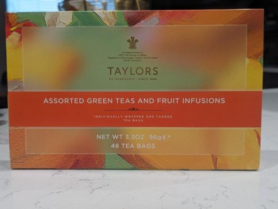 I like the variety of teas in this Taylors of Harrogate Infusions 2 Pack Variety Box. The packaging it comes in keeps it fresh. Each tea bag is individually wrapped. Each box has eight different flavors. They are so tasty & make an enjoyable cup that I don’t add anything to it. They taste fresh & have a nice aromatic smell to them. I like how each tea packet has a combination of flavors. It comes with a variety of four flavored green teas & a variety of four fruit infusions. Each flavor comes with six packets. On the back of each packet, it has the flavor description, & on the back of the box, all of the flavors are listed with their ingredients. It’s nice to enjoy a cup of this brewed tea. I like the packaging & it comes with a lot 96 bags in this two pack.
