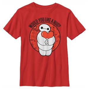Boy's Big Hero 6 Valentine's Baymax Likes Hugs T-Shirt - Red - Small