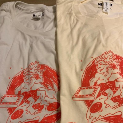 Turn your world upside down with this officially licensed Stranger Things Season 4 Men's Graphic T-Shirt! Your favorite 1980s-inspired Netflix television series is taking you back to Hawkins, Indiana to fight the evil creature, Vecna, who is terrorizing Max and other traumatized members of the town! Blast your favorite song and wear this awesome tee to fight the curse of Vecna today. This fun men's tee shows off the iconic mascot of the Surfer Boy Pizza restaurant, or a surfer on a slice of pepperoni pizza, and is the perfect costume tee for fans of Argyle.