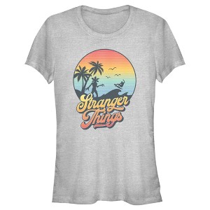 Juniors Womens Stranger Things Retro Demogorgon at the Beach T-Shirt - Athletic Heather - Medium