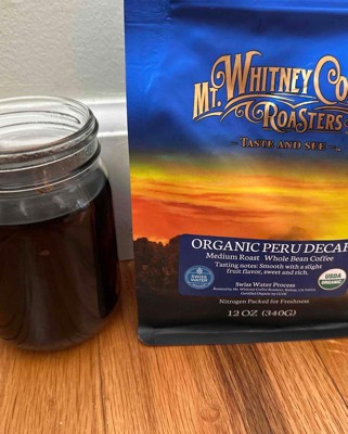 Mt. Whitney Coffee Roasters Organic Peru Decaf, Whole Bean, Medium Roast, 12 oz (340 g)