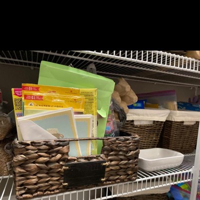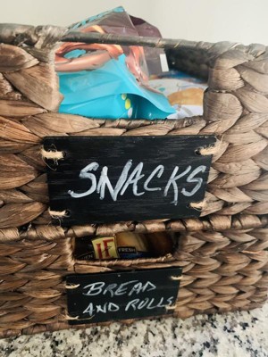 Stay organized with designated spaces that make it easy to keep track of your items. These baskets help you efficiently store and organize your home staples with easy labeling: where before you had a cluttered mess, you now have complete control over your space (Marker Included) Large baskets hold a variety of items and help optimize a space in need of order. Designed with natural materials and reinforced framing for a decorative appeal and long-lasting use, these baskets overlay a wire frame, with 100% water hyacinth, and add a wood veneer chalkboard. Make no mistake, whether it's in the bathroom, laundry, office, or bedroom, these baskets are a welcome addition to any room in need of fashionable storage.