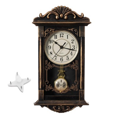 Clockswise Wood- Looking Pendulum Square Plastic Wall Clock for Living Room, Kitchen, or Dining Room, Silent Clock, Battery Powered, Black