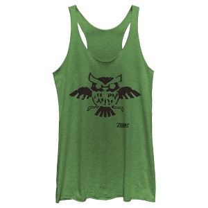 Women's Nintendo Legend of Zelda Link's Awakening Owl Hieroglyphic Racerback Tank Top - Envy Green - Medium