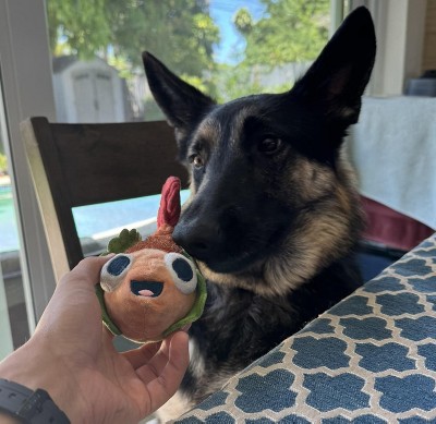 Eduardo is a big hit with my lab, it does all the fun things she expects it to - crinkle, squeak and it's also her companion for car rides. This taco also washes well, so bonus points for that. If you have a chewer, this toy is not for you as it's not super strong and will not hold up.