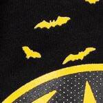 • Amazing screen print design featuring the Dark Knight superhero Batman's name in bold alongside his iconic bat signal logo with small bats flying behind