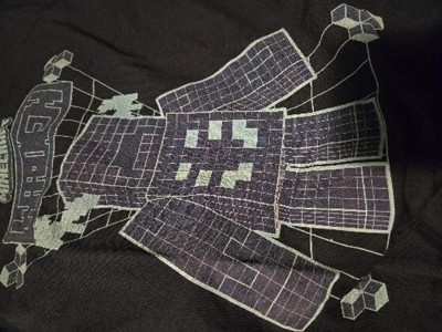 Apologize for your print quality, will discuss with our print team. Note, we are a licensed manufacturer of Minecraft product, and it is officially licensed. You may return the shirt to a Target store for a refund.