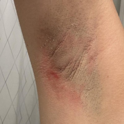 Arm pits bright red rash. Allergic reaction to something in it.