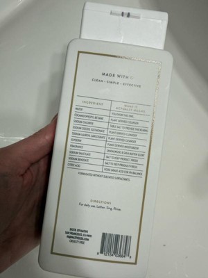 [This review was collected as part of a promotion.] The sandalwood and shea butter scent is great and love the clean ingredients. Washes well with a small amount and the bottle is a great size for the price.