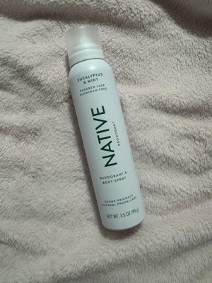 [This review was collected as part of a promotion.] I’ve been using this Native body spray and I honestly love it. The scent is super fresh and clean. You really get that eucalyptus spa vibe with a cool minty finish. It’s not sweet, not overpowering, and doesn’t smell artificial at all — just very refreshing. I like that it’s made with clean ingredients and doesn’t feel heavy on the skin. It dries quickly, doesn’t leave residue on my clothes, and is perfect for everyday use, especially after a shower or when I just want to freshen up. This is more of a light, clean body spray rather than a strong perfume, which I personally prefer for daily wear. It makes me feel fresh without being too much.