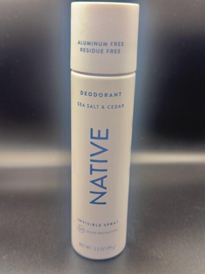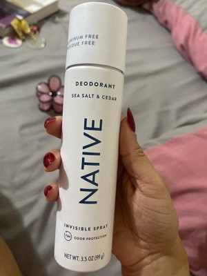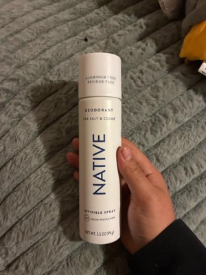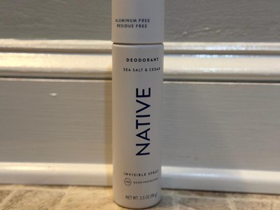 [This review was collected as part of a promotion.] I didn’t think native could get any better! Now it’s in spray form! The sea salt and cedar is a match made in heaven they blend so nice together. So sticky residue feeling you get with most spray deodorants.