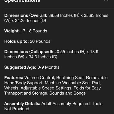 Do not buy, return policy is 90 days and so is the manufacturers warranty. And it lasted 4 months of use, my baby just turned 4 months and the touchpad stopped working. You’ll try to touch the volume for music and it’ll stop swinging or turn the lights on or off, you’ll try to turn it off shed it turns the lights off or changes the volume. It also randomly shuts off. Target is no help with this item and neither is the manufacturer so it’s clear why their warranty is 90 days only. On ingenuities site there are reviews just like mine with the same issue. Highly do NOT recommend, it will fail before your baby outgrows it or even starts sitting on their own.