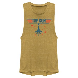Juniors Womens Top Gun Fighter Jet and Stars Logo Festival Muscle Tee - Gold Heather - X Small