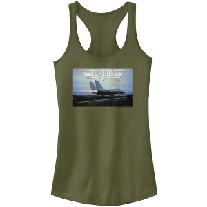 Juniors Womens Top Gun Fighter Jet Ready for Takeoff Distressed Racerback Tank Top - Military Green - Large