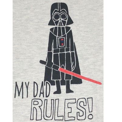 Start your little one’s Star Wars journey early with this adorable bodysuit featuring Darth Vader and Yoda! This officially licensed one-piece is made from a soft cotton blend with lap shoulders and a 3-snap closure for easy outfit and diaper changes. The bold graphic design includes Darth Vader’s red lightsaber and the fun phrase “My Dad Rules!”—perfect for mini fans of the galaxy far, far away. Whether it’s for everyday wear, gifting, or galactic cuddles, this bodysuit brings comfort and character in every stitch.