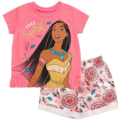 Your little Disney fan is ready for a magical day in these cute sets featuring her favorite fairy tale princesses! These stylish short sleeve tee and shorts sets feature artwork of characters like Cinderella, Moana, Pocahontas, Snow White, Jasmine from Aladdin, Ariel from The Little Mermaid, Belle from Beauty and the Best, Tiana from The Princess and the Frog, Rapunzel from Tangled, Raya from Raya and the Last Dragon, and Elsa from Frozen. Made of a soft material that keeps your little girl comfortable, these pretty Disney Princess outfits are perfect for a day of fun and play!