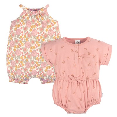 • Snap closure for easy dressing, in crotch for baby sizes and back placket for toddler; Shoulder straps with stylish bows; Roll-up leg cuffs