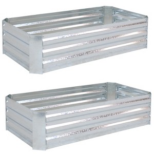 Sunnydaze Raised Corrugated Galvanized Steel Rectangle Garden Beds for Plants, Vegetables, and Flowers - 48" L x 11.75" H - Silver - 2pc