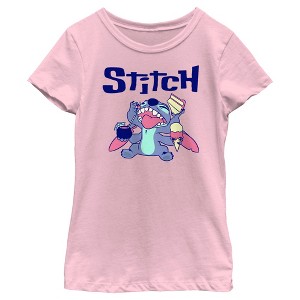 Girl's Lilo & Stitch Munchies Stitch T-Shirt - Light Pink - Large