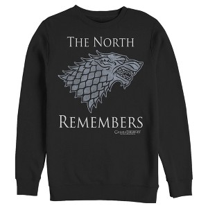Winter is coming! Don't find yourself out in the cold without one of these officially licensed Game of Thrones styles! Even the White Walkers will seem friendlier if you're wearing a fun GOT design. Celebrate the award-winning television series, Game of Thrones, with this North Remembers Symbol Men's Graphic Crewneck Sweatshirt featuring the phrase: " The North Remembers," along with the emblematic wolf of House Stark. The night may be dark and full of terrors, but that doesn't mean your fashion choices need to be!