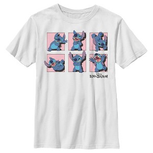 Boy's Lilo & Stitch Poses in Pink Panels T-Shirt - White - Large