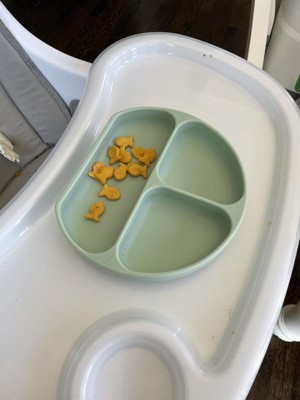 [This review was collected as part of a promotion.] This is a great plate for toddlers and babies. It’s a decent size and suctions to the table so she can’t throw the whole plate of food to the floor. I like the portion sizes and that I can separate my daughters food into sections. My toddler likes eating off of a plate like her big sister. It’s super easy to clean and the silicone is such high quality.