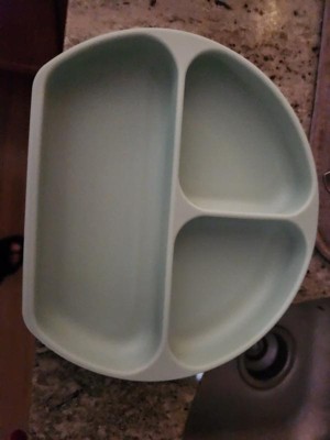 [This review was collected as part of a promotion.] This is a really nice suction plate that is good quality. It is a thick soft rubber and has good size portion areas. I find it has good suction and while my 14M old has pulled it up, it’s much less frequently than other nonslip/suction plates and bowls. Also, I love the green/mint color!