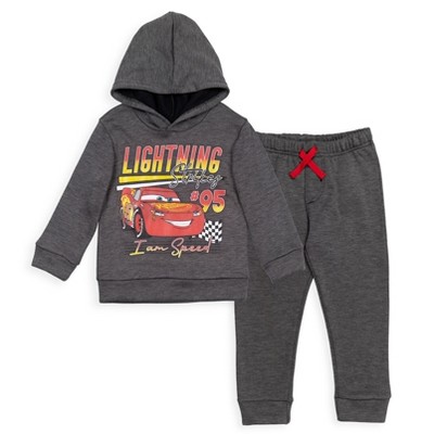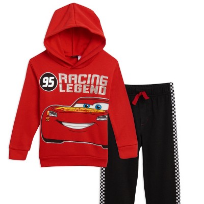 Officially licensed Disney Lightning McQueen toddler boys cute, comfy and stylish long sleeve graphic hooded sweatshirt and pants