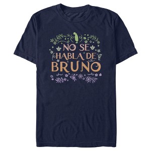Join the Madrigal family for some magical and musical fun in the mountains of Colombia in Disney's new hit film Encanto! This officially licensed Men's No Se Habla De Bruno Tropical Floral Leaves Tee features a graphic of Bruno Madrigal with the phrase "No Se Habla de Bruno" alongside colorful leaves, flowers, and nature patterns. Grab this new t-shirt today and show your love for your new favorite Disney movie!