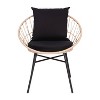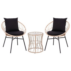 Merrick Lane 3 Piece Patio Set with Tan Rope Rattan Chairs, Matching Glass Top Side Table and Black Cushions for Indoor/Outdoor Use