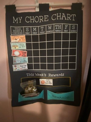 [This review was collected as part of a promotion.] Gets my kids excited to do chores! It’s colorful and the pictures are clear. Even my 2 year old understands exactly what each image represents. My 4 year old always wants to add more chores than space allows. This chart is helping her learn her days of the week as well as responsibility for her chores if she wants a reward. The rewards are very cute, some are family activities we’ve never even done before so it’s been great to start new traditions. We love this chart. My one suggestion would be to include another space to store the stars. One storage pouch isn’t enough for all the chores, rewards and stars, plus the get all mixed up.