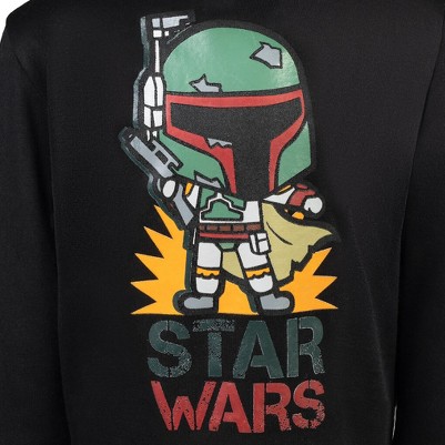 Your Star Wars fan is ready to go on adventures in a galaxy far, far away with their favorite bounty hunter. This cozy hoodie features awesome colorful artwork of Boba Fett in his awesome armor. Made of a soft material that keeps your kid comfortable and warm, this cool Boba Fett pullover sweatshirt is perfect for play on those chilly days.