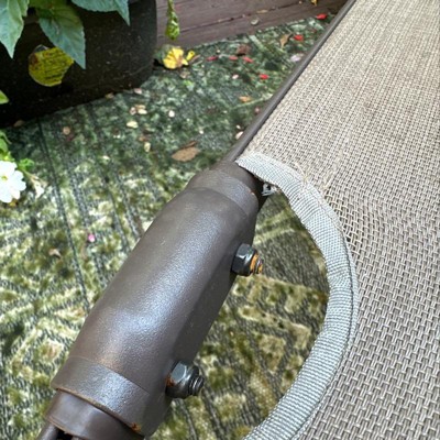 this is a cheap one season throw away chaise. it is plastic and thin metal, flimsy, incorrectly assembled at factory, less than TWO WEEKS and the material is fraying, the plastic keepers are falling out and one armrest is torn off. shamefull construction. on the plus the chair is very comfortable. I am already purchasing another brand as a replacement. this purchase felt like i was lied to and stolen from.