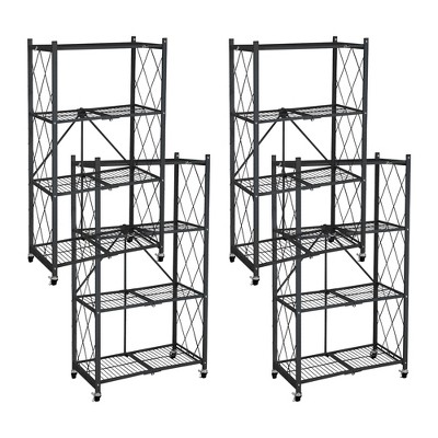 Origami R3 Foldable 3-Tiered Shelf Storage Rack & Wheels, Pewter (4 Pack)