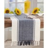 Saro Lifestyle Striped Cotton Table Runner with Tassel Fringe – Woven Neutral Table Décor for Modern, Farmhouse, Boho & Coastal Homes, Navy Blue,