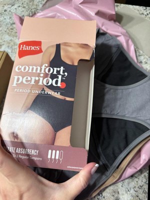 GO ANYWHERE, DO ANYTHING PROTECTION With Hanes Comfort, Period.™ protection, you can go anywhere and do anything without worrying about leaks, odor, or bulk. The absorptive stain block liner in these brief period panties helps reduce staining, while the streamlined design reduces bulk under your clothes. The moderate protection offered in this period underwear is designed to provide peace of mind for periods, postpartum bleeding, unexpected leakage during exercise, or overnight accidents. Moisture-wicking technology keeps you cooler and more comfortable while the odor guard neutralizes unwanted odors. Know what’s even better? This women's underwear is washable and reusable so it’s easier on your wallet.