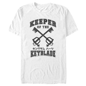 • Strut your stuff with this stylish new everyday men's T-Shirt that is perfect for every occasion! Featuring two Keyblades with the phrase "Keeper of the Keyblade" printed on the front in black.