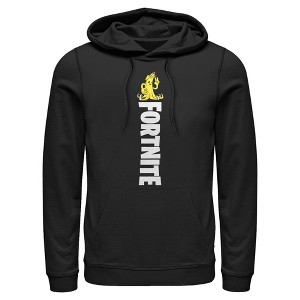 • Strut your stuff with this stylish new Men's Graphic Hooded Sweatshirt that is perfect for every occasion! Featuring a vertical Fortnite logo with a small Peely holding up a peace sign at the top.