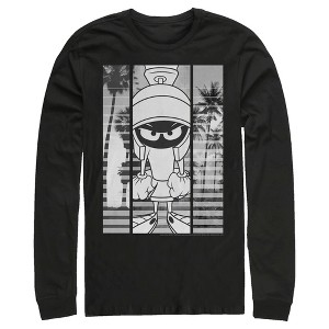 Men's Looney Tunes Marvin the Martian Black and White Long Sleeve Shirt - 1 of 4