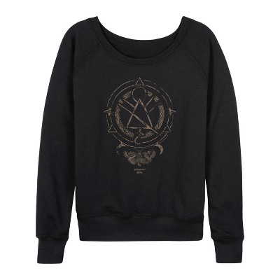 Unlock magical secrets hiding in the closet under the stairs with this officially licensed Harry Potter Hogwarts Watercolor Symbols Men's Black Pullover Hoodie that features the crest for the Hogwarts houses with each of their mascots. Head to Hogwarts with your favorite witches and wizards like Harry, Hagrid, Dumbledore, Hermione Granger, Ron Weasley, and Neville Longbottom, and learn to defeat He Who Shall Not Be Named! And, just remember, the spell is Wing-gar-dium Levi-o-sa and NOT Wingardium Leviosa!