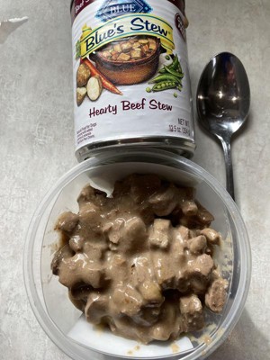 I have to periodically switch up canned foods to mix into my dog’s fry food because she is picky. She really loved the beef chunks and gravy in this stew.