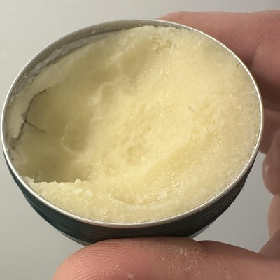 Got the can and opened it. Went to push my fingers onto it and the balm sunk into the can. It’s missing at least 1/2 of the product. The scent is to heavy. I can smell it heavily all day. It doesn’t absorb well just kind of sits on top.
