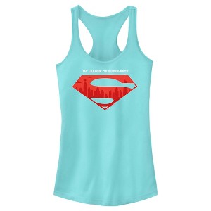 Juniors Womens DC League of Super-Pets Skyline Superman Crest Racerback Tank Top - 1 of 4