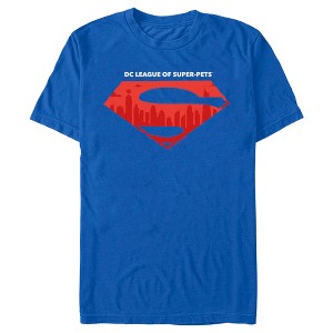 Men's DC League of Super-Pets Skyline Superman Crest T-Shirt - Royal Blue - 2X Large